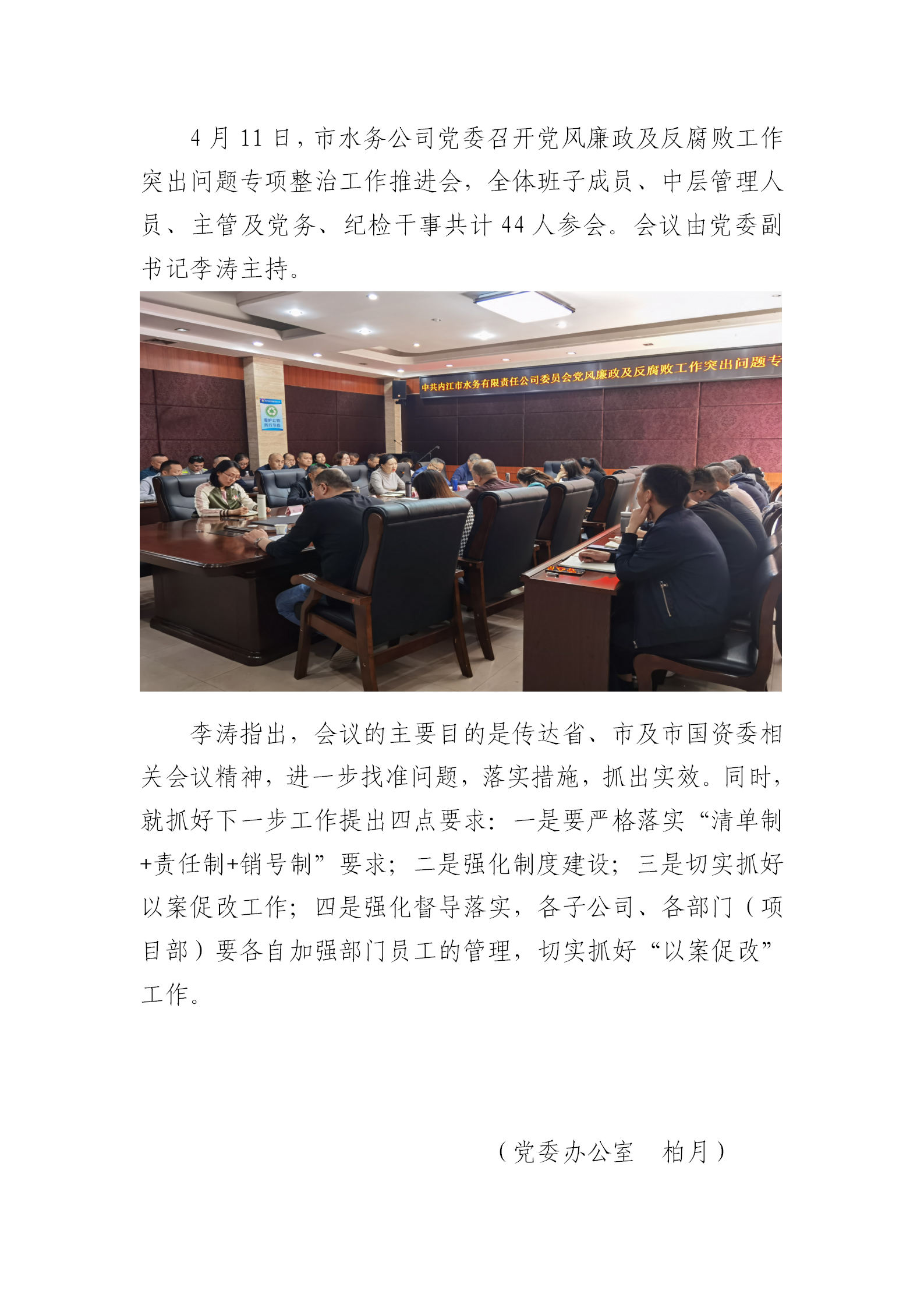 市水務(wù)公司召開黨風(fēng)廉政及反腐敗工作突出問題專項整治工作推進(jìn)會