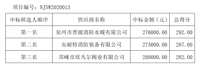 內江市水務有限責任公司消火栓采購項目評標結果公示