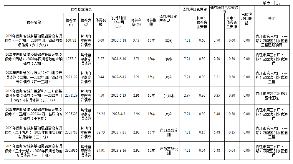 截至2023年末新增地方政府專(zhuān)項(xiàng)債券情況表