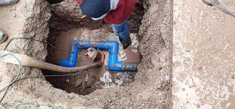 1129日,經(jīng)開區(qū)污水處理廠工作人員在巡視中發(fā)現(xiàn)廠區(qū)內(nèi)進(jìn)出水管道疑似有滲水現(xiàn)象。公司工程管理部接到報(bào)修電話后,立即奔赴現(xiàn)場(chǎng)進(jìn)行勘察,迅速對(duì)供水管道設(shè)施進(jìn)行排查,確定是污水處理廠內(nèi)DN110DN90給水管道漏水,需立即修復(fù)。