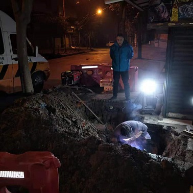 22日晚840分,接到市民報漏電話,位于晏家灣車站外的供水主管爆裂,部門立即組織人員趕往現(xiàn)場。經(jīng)查看確認(rèn)為一根DN150供水主管破裂,為了保障居民的正常用水,搶修人員連夜冒雨對供水管道進行搶修,經(jīng)過5個小時的搶險作業(yè),于次日凌晨1點完成搶修任務(wù),保障了該區(qū)域居民正常用水。
