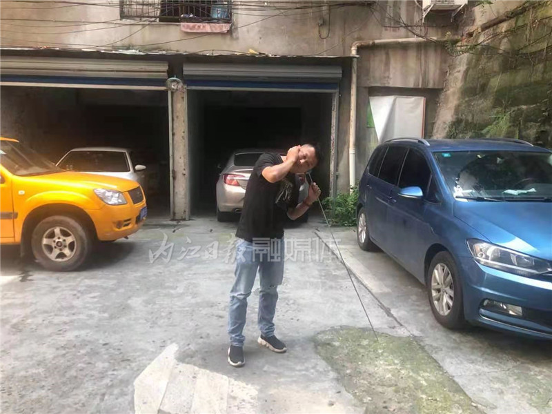 張羽和同事前往現(xiàn)場探漏,由于管道絕大部分位于停車場和已上鎖關閉的辦公室地下,且緊鄰玉帶溪,漏水點不易發(fā)現(xiàn),加上不熟悉管線分布情況,他們只能“盲測”。