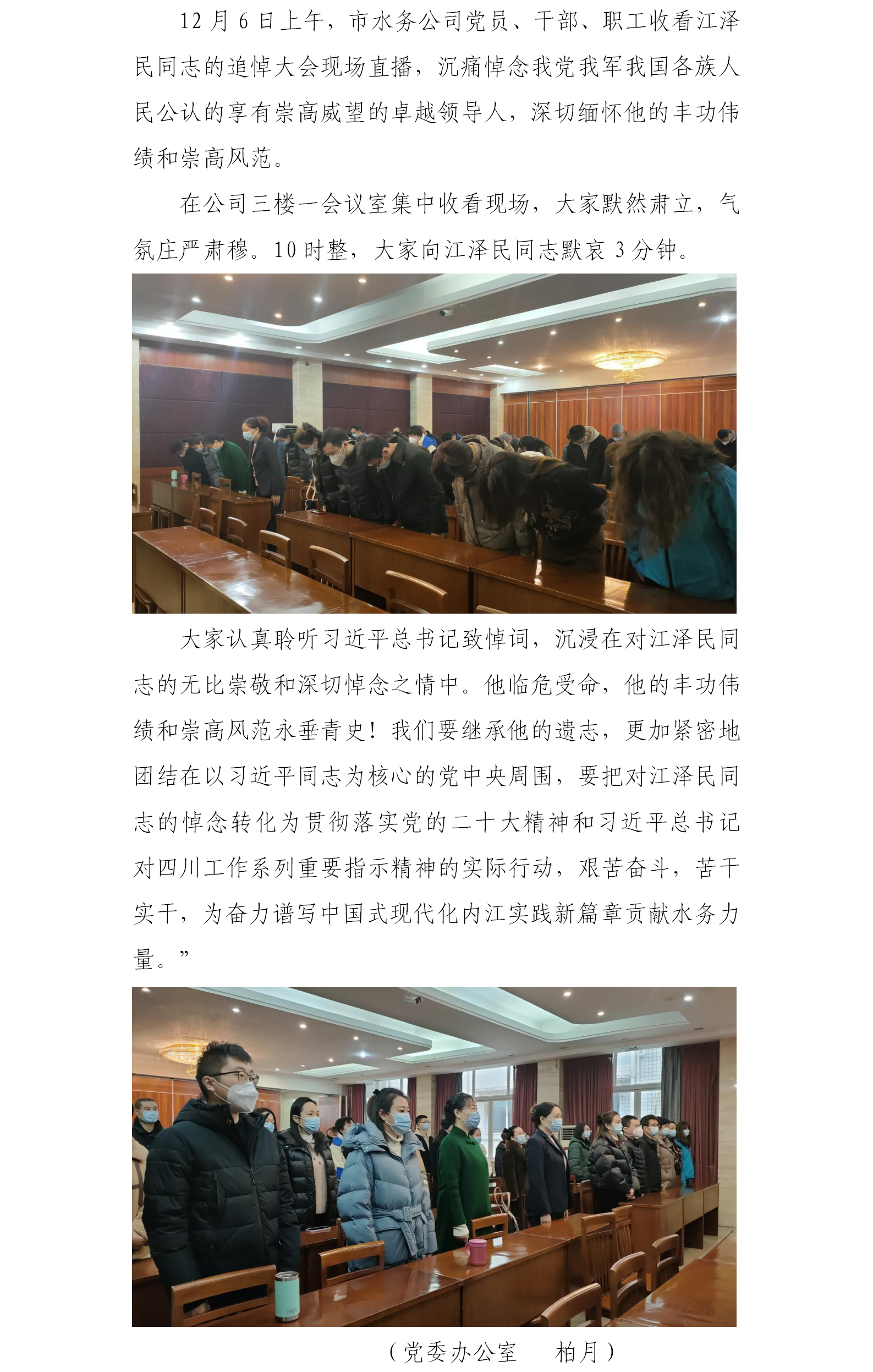 市水務(wù)公司黨員干部群眾收看江澤民同志追悼大會(huì)現(xiàn)場(chǎng)直播