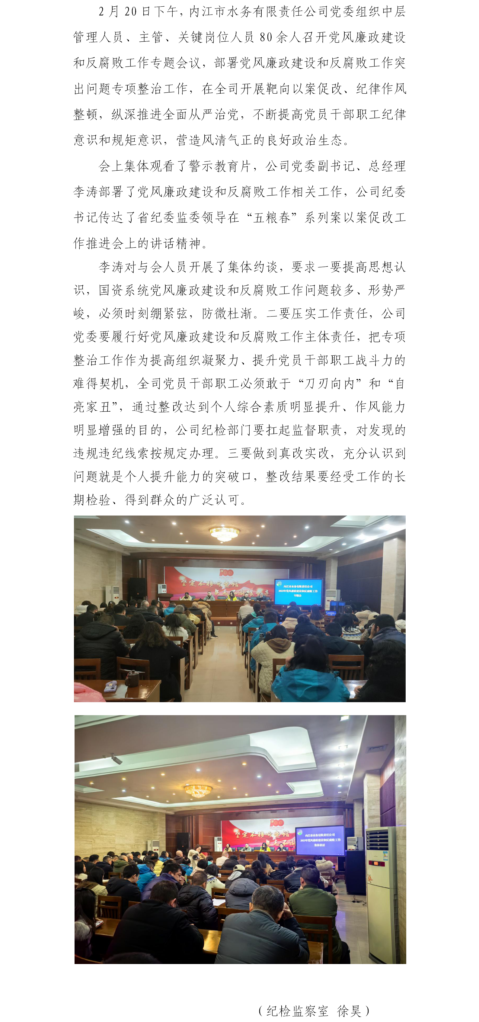中共內(nèi)江市水務(wù)有限責(zé)任公司委員會召開黨風(fēng)廉政建設(shè)和反腐敗工作專題會議