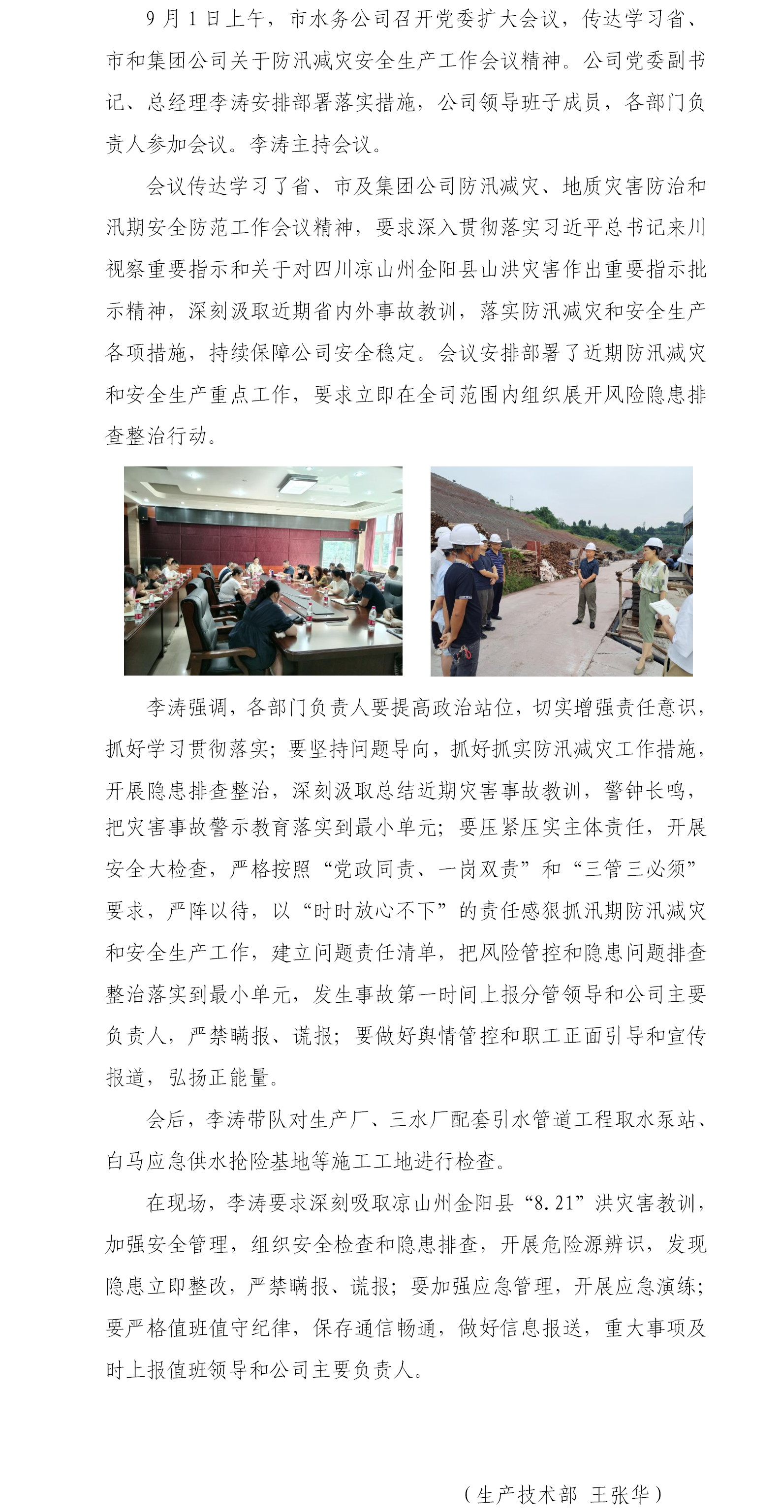 內(nèi)江市水務(wù)有限責(zé)任公司召開防汛減災(zāi)安全生產(chǎn)工作專題會、開展安全大檢查