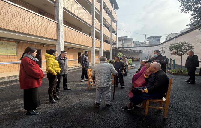 慰問(wèn)組為老人們送上保溫杯、保暖內(nèi)衣、現(xiàn)制糕點(diǎn)等暖心物資,并向大家致以新春的美好祝福。杜舟一行實(shí)地查看了敬老院的后廚、老人居室等場(chǎng)所,詳細(xì)了解了老人們的飲食起居、日常照料和安全管理等情況。