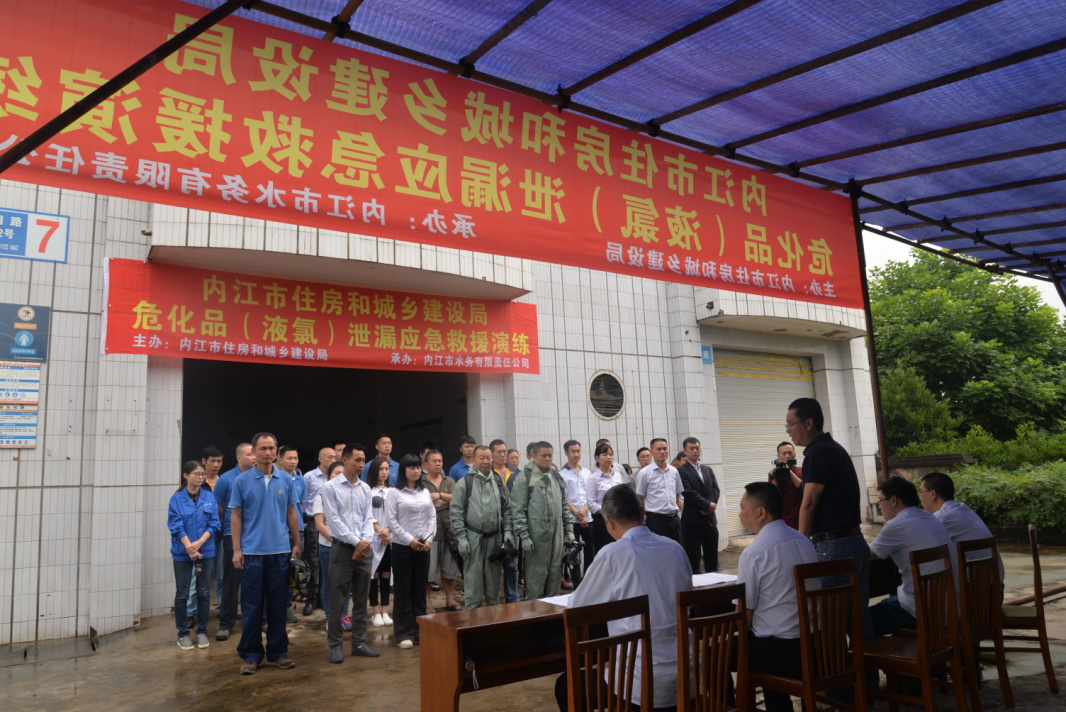 2017年6月16日上午,為做好?;钒踩芾砉ぷ鳎0踩┧?/span>,公司在二水廠成功進(jìn)行液氯泄漏應(yīng)急救援演練。本次演練,由市住建局主辦、公司承辦,公司黨委書記、董事長(zhǎng)、總經(jīng)理寧印福任總指揮,總工程師蒲彬任現(xiàn)場(chǎng)總指揮,生產(chǎn)技術(shù)部組織,二水廠具體實(shí)施,共計(jì) 50多人參與演練。