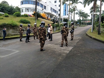為加強(qiáng)安全生產(chǎn)管理,提高員工反恐怖襲擊事件應(yīng)急處置能力,9月公司二水廠成立反恐怖安全領(lǐng)導(dǎo)小組,加強(qiáng)廠內(nèi)安全檢查,每周至少召開(kāi)一次安全例會(huì)。10月初成立反恐怖應(yīng)急機(jī)動(dòng)分隊(duì),并編制《二水廠反恐怖防范應(yīng)急演練方案》,明確規(guī)定門(mén)衛(wèi)、應(yīng)急機(jī)動(dòng)分隊(duì)等的安全保障任務(wù)。